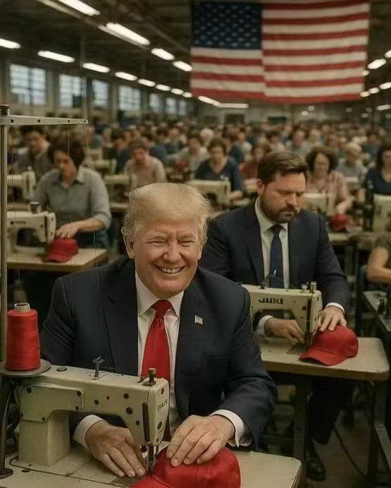 文化人做着梗图嘲笑懂王和万税爷正让美国重回低端制造业,让美国人 “work again”。