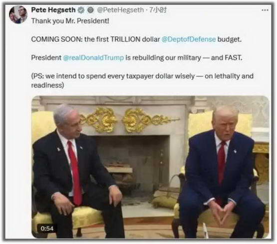 而在今天,美国防长赫格塞思也暗示,特朗普将把美国的国防预算提到一万亿美元。