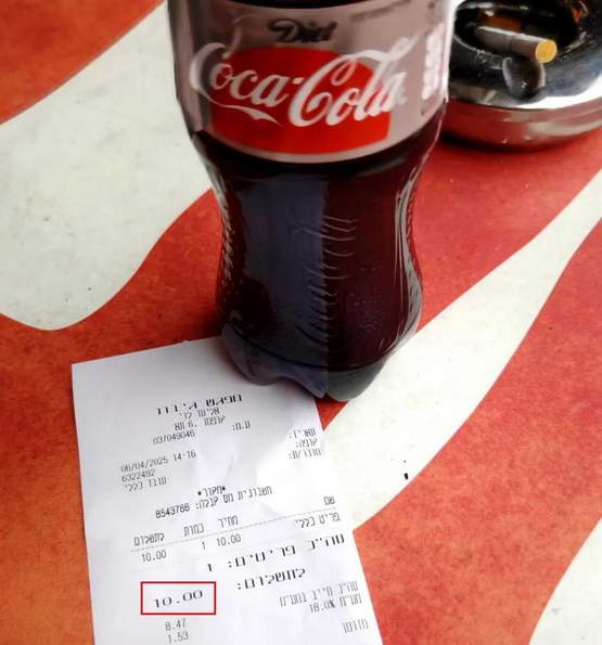 500ml 可乐:10 谢克尔(20 人民币),这也是所有瓶装饮料的起步价,但凡喝点什么,都要几十块。