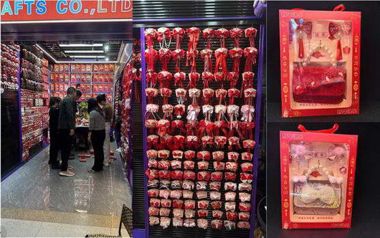 从服装、饰品、头花、发卡,小到钥匙扣上女娃娃的眼镜,在义乌都有供应商,都有加工厂