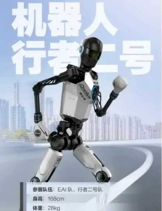 第三是行者二号,中途换过两次机器人,用时 4 小时。身高 1.68 米,和人类也差不多。