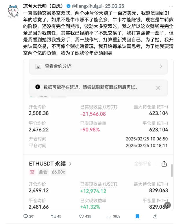 与此同时,质疑声也从未中断。有人认为他不过是 “赌对了方向”,也有人嘲讽:“凉兮这人已经不是交易员了,他是币圈剧本杀头牌营销。”