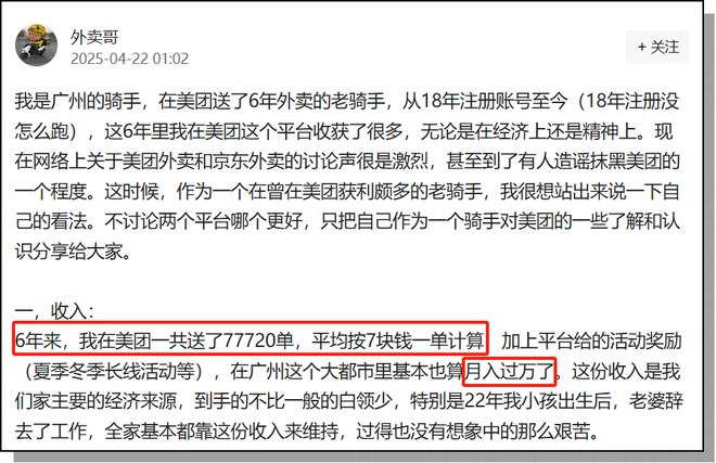 前几天刚刷到一位外卖小哥的帖子,说自己在美团跑了 6 年外卖,攒下 77720 单。