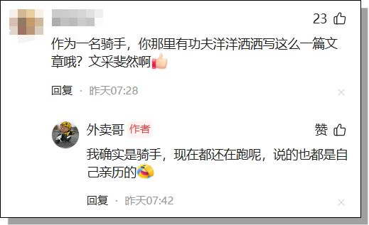 也希望大家以后刷到那些为骑手发声的文章或者视频,不妨先放下 “他们很惨” 的负面滤镜,听听他们真实的声音。