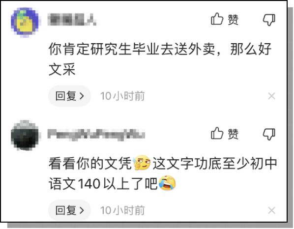 末了还要阴阳怪气一番,让他 “培养孩子继续送外卖”。