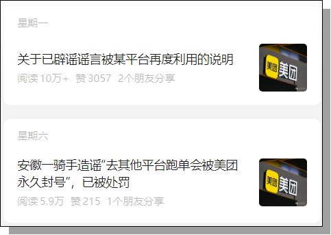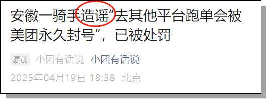 有人恶意炮制了 “去其他平台跑单会被美团封号” 的言论,引人遐想。平台早已辟谣。