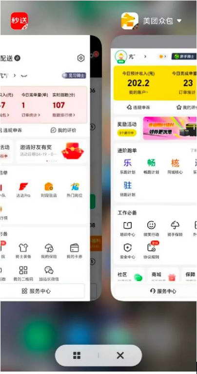 还有骑手晒出了手机截图页面,证明两个平台都可以正常接单。