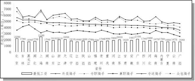 新就业形态研究中心数据显示,各省市外卖骑手的月均收入均高于当地的月最低工资标准。