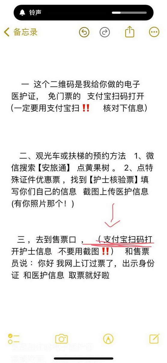 我问她干嘛,店家扔来一份指南,说要给我做医护资格信息,免门票的售票口出示信息就好了,包进的。