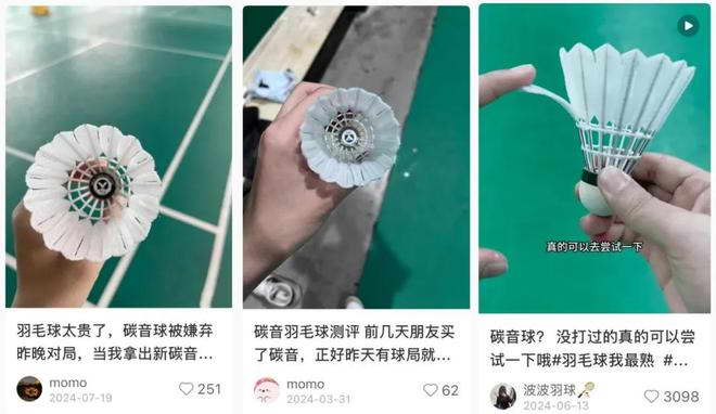 为了省钱,有人开始努力适应人造球,比如碳音球。这是一种新型人造球,在击球瞬间,碳音球的声音清脆,弧线和飞行轨迹接近天然羽毛球。