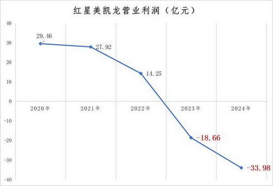 在 2023 年开始滑坡,2024 年达到接近 34 亿的亏损、超过 80% 的降幅