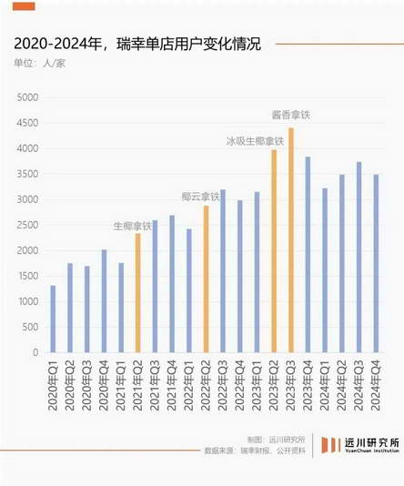 从瑞幸的单店用户数来看,在生椰拿铁、椰云拿铁和冰吸生椰拿铁推出后,瑞幸的当季单店用户都有一个大幅增长,并在小幅下滑后稳定在一个区间内 [14]。