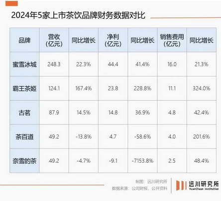2024 年,国内五大上市茶饮品牌里,各家营收和利润增速有涨有跌,但唯独在 “花钱” 这件事上,大家出奇一致 ——?五家品牌销售费用全部正增长。