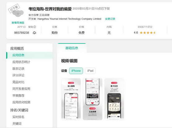 在七麦数据上,考拉海购 APP 显示 “已下架”,下架时间为 2025 年 3 月 31 日。过了一个多月,才开始有媒体陆续注意到。