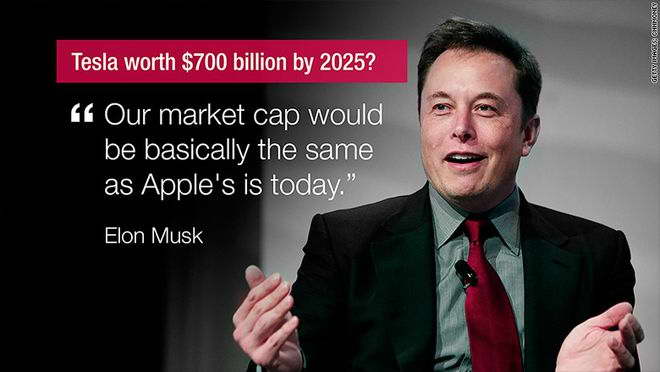 2015 年,马斯克称特斯拉市值将在十年后达到 7000 亿美元