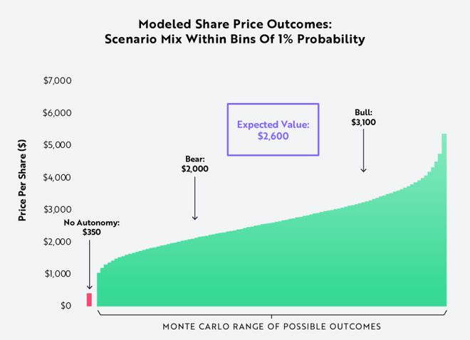 作为马斯克的头号脑残粉,木头姐虽然在新报告中继续唱多特斯拉,给出了 2600 美元的目标价,但也罕见加入 “防杠声明”:若没有自动驾驶,特斯拉目标价将缩水到 350 美元。