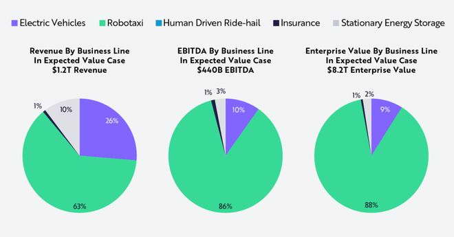 方舟基金预测,2029 年特斯拉近九成企业价值和收益将来自 Robotaxi