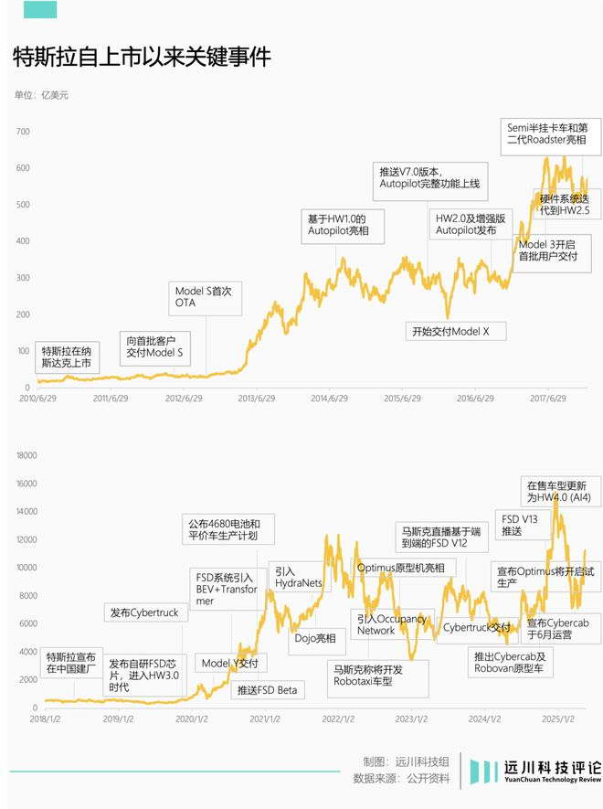 当时特斯拉市值 “只有” 250 亿美元,而苹果刚成为首家市值突破 7000 亿美元的科技公司。十年后,特斯拉市值超过 1 万亿美元,而且是跌下来的。