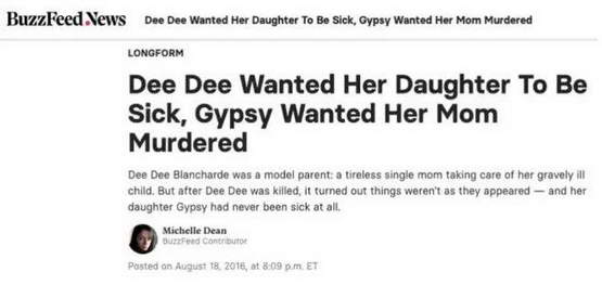 在别人眼中,Gypsy 是个可怜的孩子,身患白血病、哮喘,因脑损伤失智,无法站立,只能坐在轮椅上,而她的母亲 Dee Dee Blanchard,为了照顾她,历经艰苦,还曾经无家可归。