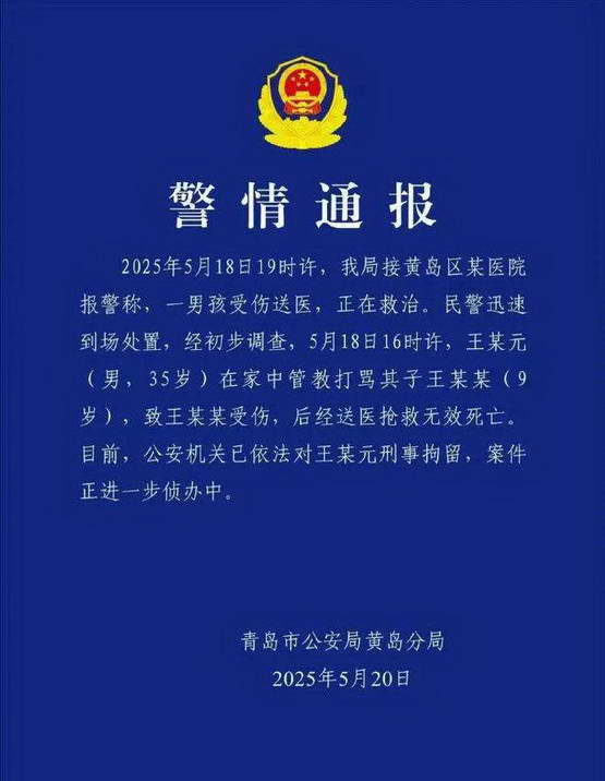 警情通报中提到,父亲是在 “管教打骂”,目前已经被刑事拘留。