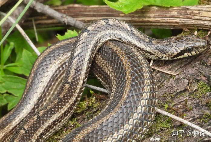 白条锦蛇又名枕纹锦蛇、黑斑蛇,成年体长在 0.7-1 米,广泛分布在中国秦岭至淮河以北各省区,栖息地没多大讲究,平原、丘陵、山地都有其身影,它们主要以老鼠、小型鸟类、鸟蛋及鱼蛙为食。