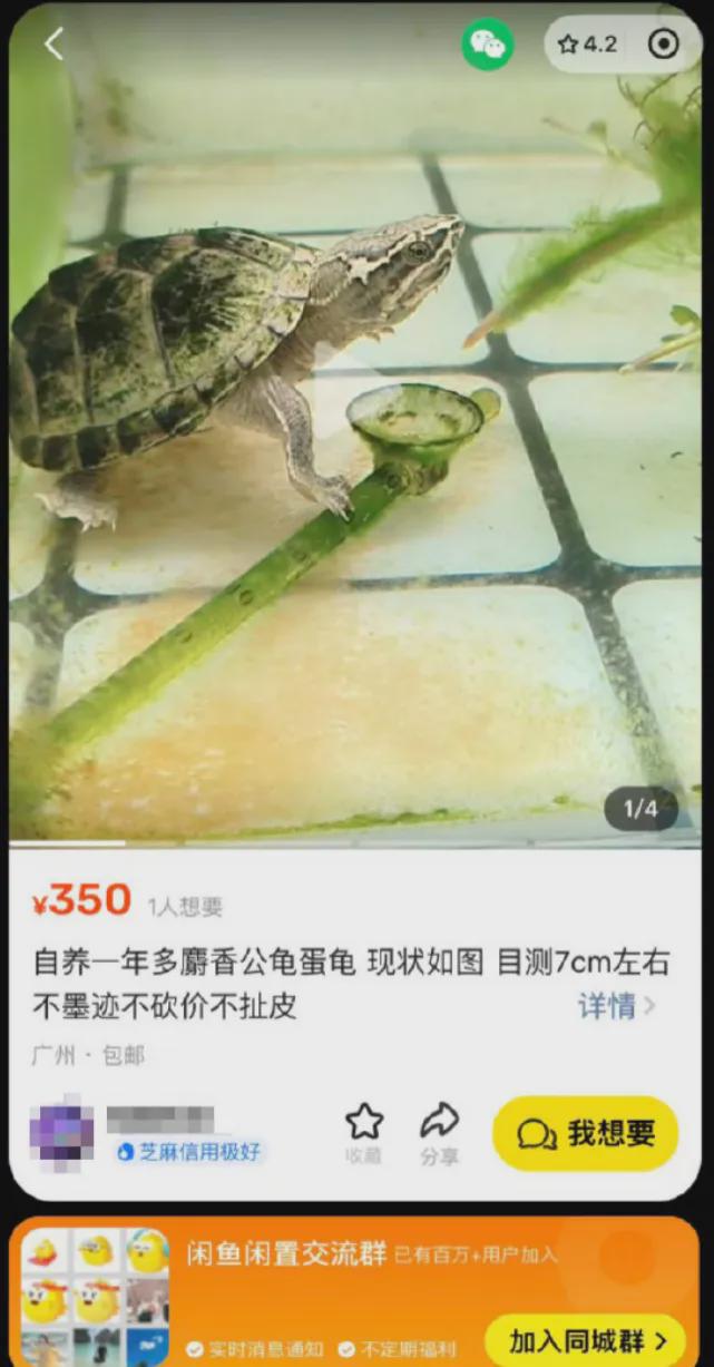 起因是一位广州卖家打算出售麝香公龟。