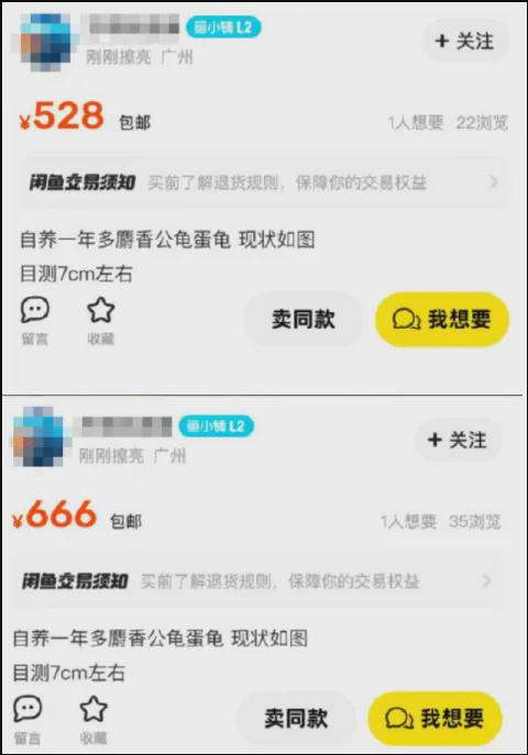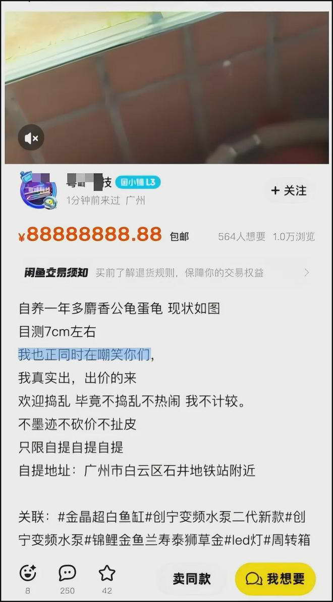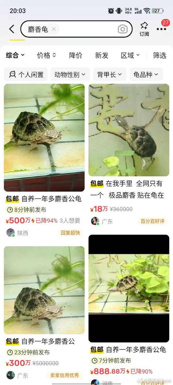 于是现在闲鱼上出现了一大堆数十万乃至数百万的麝香龟,好不热闹: