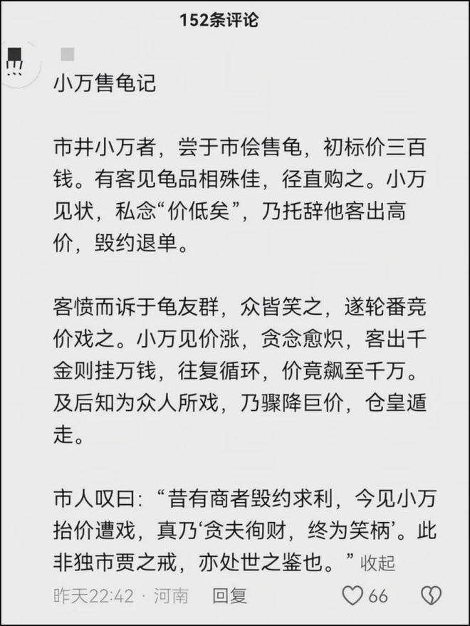 于是乎,就这么一只原价 500 元的公龟,硬是被抬价到了 38 万元。