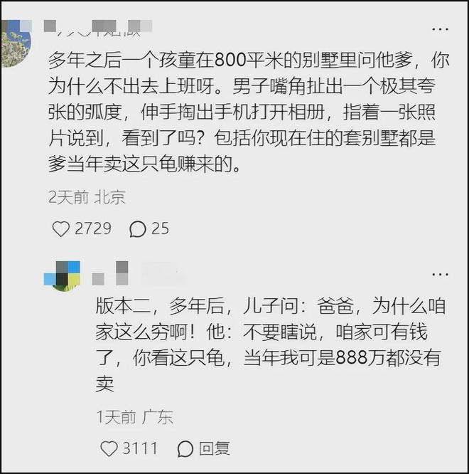 有网友表示 “万一哪个冤大头,看到麝香龟突然涨价这么多,真的买了咋办?”