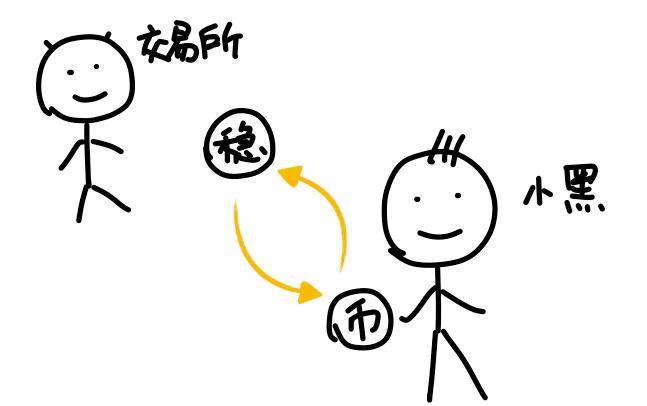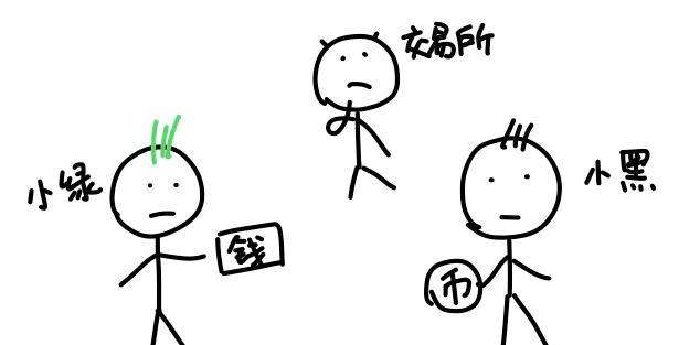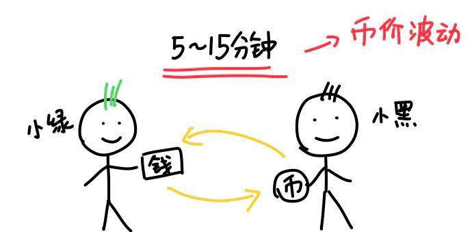 你看啊,小绿把钱打给小黑,得操作手机来输入卡号什么的。小黑要先确认到账,再把币放给小绿。