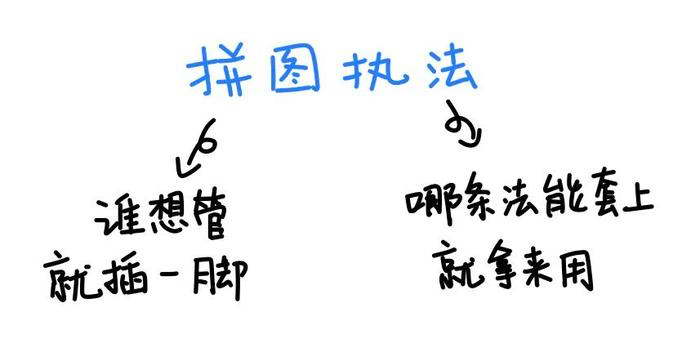在没有专门的法律的情况下,就只能?“拼图执法”,也就是哪个部门能找出一点关系,就来插一脚,哪条法律能套上,就拿来用一用。