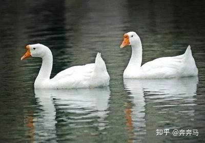 中国东部常见的白鹅,祖先是鸿雁,最典型的特征是有 “额头”