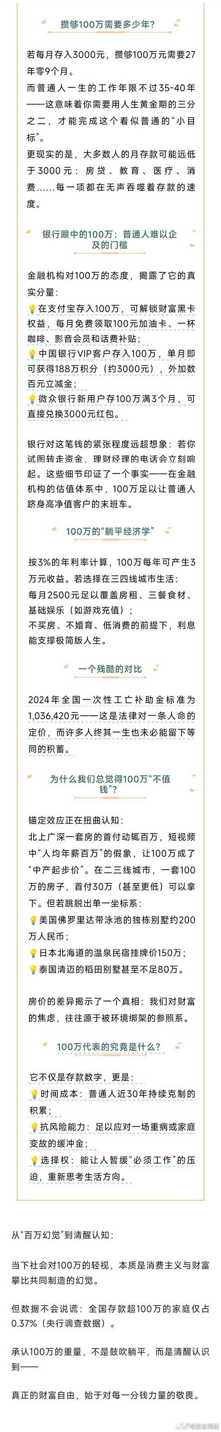 觉得 100 万没多少钱的人主要集中在某些网络平台上,现实中还是比较少的。
