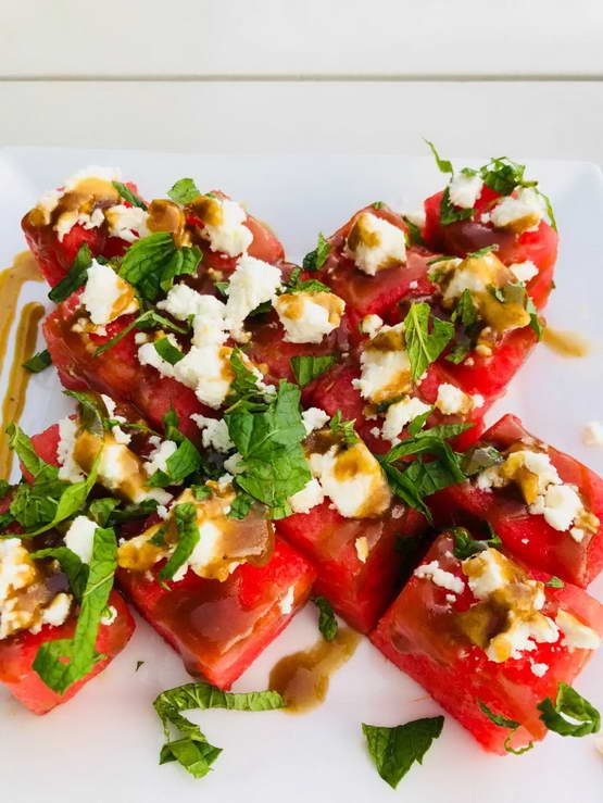 西瓜 + 山羊奶酪 + 蜂蜜。