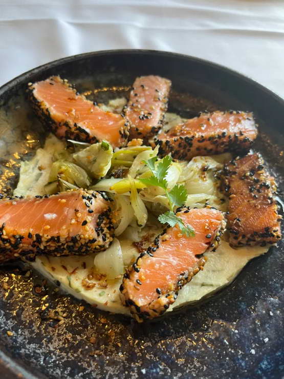 我有位朋友,在巴黎的名店 “蓝色列车”,点了当日厨师推荐菜:鲑鱼蘸芝麻烤后,搭配两种酱汁:一种是酱油,一种是第戎芥末搭配芜菁末。她狐疑地观察半天,问我:“这是法国厨师做的吗?—— 怎么这调味怪怪的?”