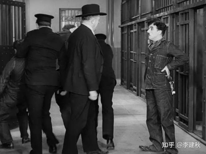 这是卓比林饰演的工人,被抓紧监狱去了,他穿的是囚服,如你所见,是一身的牛仔服中国人普及牛仔服,要在 90 年代以后了,他这身牛仔服,我在 90 年代就穿过。