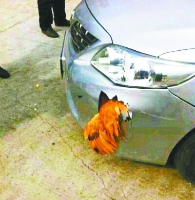网传公鸡撞穿轿车保险杠:鸡没死 车坏了