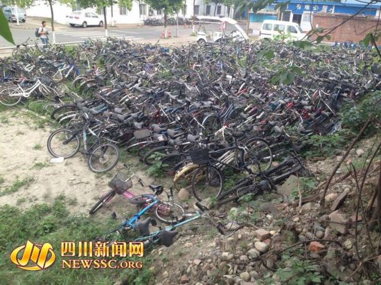 “主人啊,你在哪里?”7日,有网友晒出一组照片,在四川大学江安校区一片荒地的里,一大片自行车躺在那里,有的车挺新,有的车已经倒地生锈。