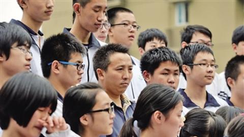 海外网5月16日电昨天,重庆市第57中学的操场上,初三3班的同学们照了一张特殊的毕业照。在一群年轻的面孔中,47岁的陈晓章显得有点格格不入。作为一个父亲,他是来填补空缺的,为儿子陈壮果圆一个毕业梦。