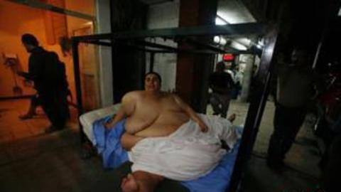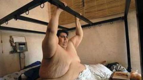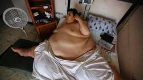 当地时间2014年5月26日,墨西哥,世界最胖男人Manuel Uribe去世。据当地媒体报道,Manuel Uribe几日前因健康状况和心脏问题住进医院。Manuel Uribe曾以560的体重创下吉尼斯世界纪录,因为体重原因,卧床9年。2008年与 Claudia Solis结婚。图为Manuel Uribe资料图。