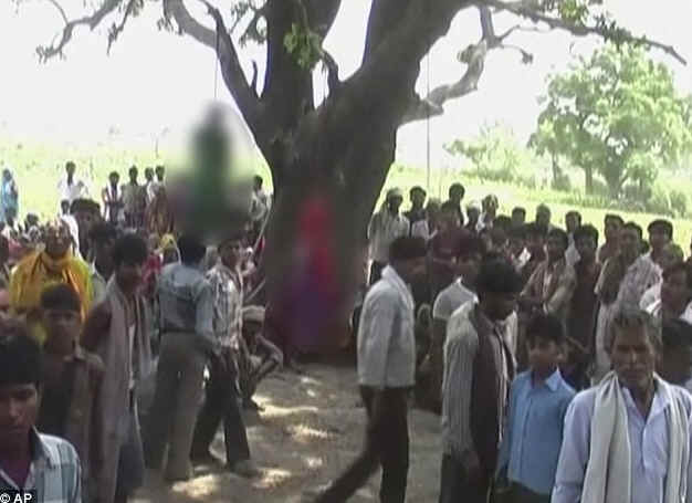 印度一对14,15岁的姐妹被轮奸之后,尸体被挂在一棵芒果树上