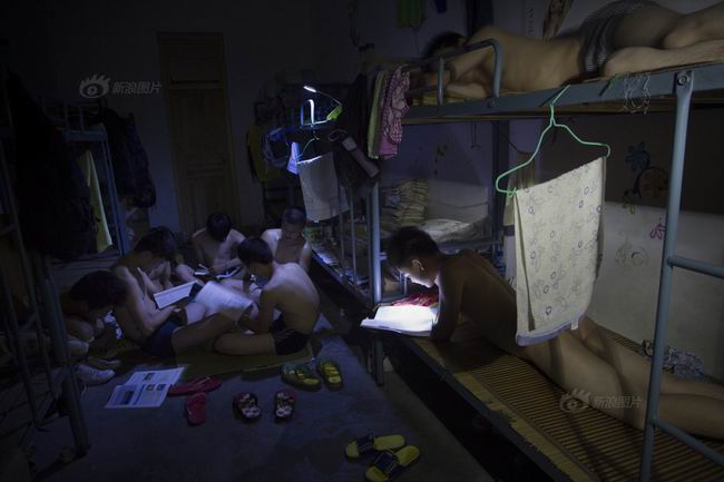 晚上10点35分是学校寝室熄灯,高二的学生借着两盏充电台灯的光亮继续学习。