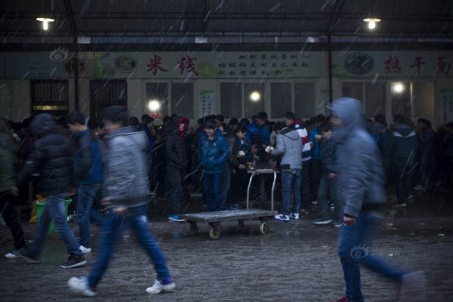 早上7点,天空飘着雪花,天色尚未大亮,正是汝南高中高一、高二学生开始吃早饭的时间。由于学生太多,高三年级学生的吃饭时间特意被提前错开,不到十分钟,所有学生基本都会结束吃饭,吃过饭的学生随即都会进入教室学习。