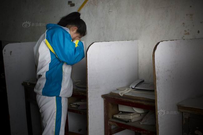 汝南高中话吧内给家人打电话的女生偷偷抹起了眼泪。这所学校的很多学生来自农村,大多是留守孩子。学习紧张,一个月难得回家一次,父母大多在外打工,一年半截可能也难见面。面对学习和高考压力,生性脆弱的女生常常会不定时地出现一些反常的心理。