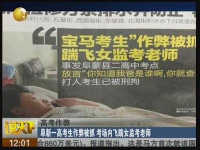 这位同学果然表现“出色”——他在考场上明目张胆地拽出一部手机企图作弊,监考老师不得不上前制止,收走了手机。然而老师刚一转身,此同学背后飞起一脚,把女监考老师从最后一排直接踹飞到讲台之上!——据说后来还补了几脚,但从第一大脚之后,老师就啥也不记得了……(华商晨报)