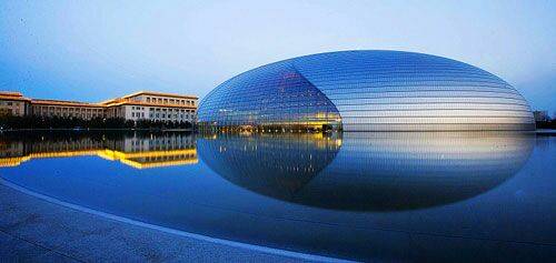 国家大剧院是一个很纯粹的半球体(并不是正球),几何形体本来就是人类抽象出的形象,有很强的力量感与抽象性,只是正方体长方体被用的多了,也就习惯了,但别的几何体建筑还是有很强的地标性的。比如这个大剧院,比如巴黎卢浮宫广场上的金字塔与埃及的金字塔。