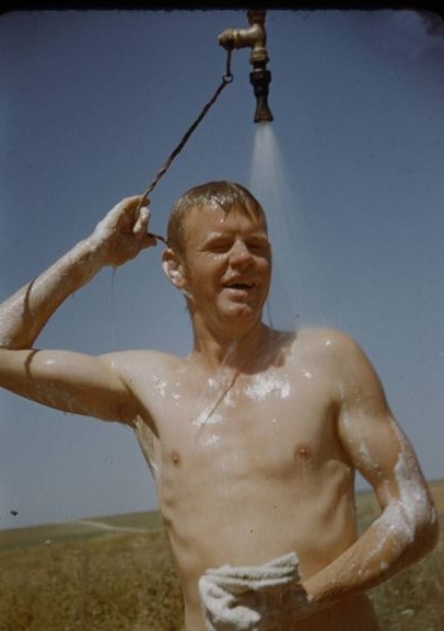 战场上洗澡的士兵