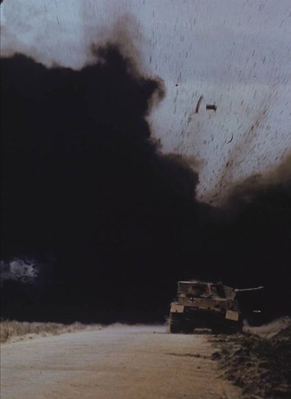 北非战场上战斗过后燃烧的德军坦克