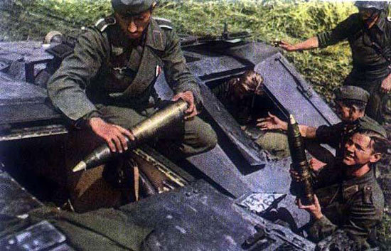 正在往装甲车里面运送炮弹的德军士兵