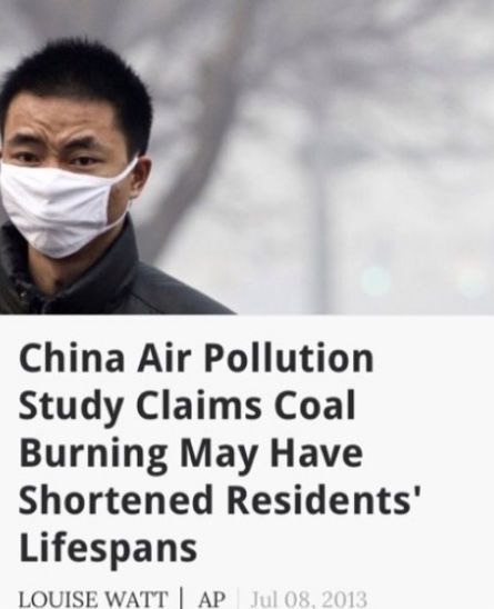——【 《美国国家科学院院刊》7月8日发布报告指出 ,上述差异是由心血管疾病引发的死亡导致的,空气污染使中国五亿北方居民平均寿命减短,还提升了肺癌、心脏病和中风的发病率。】